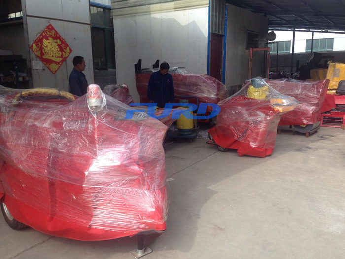 福瑞得机械座驾压路机、大容量灌缝机,小型灌缝机包装完毕准备发货。