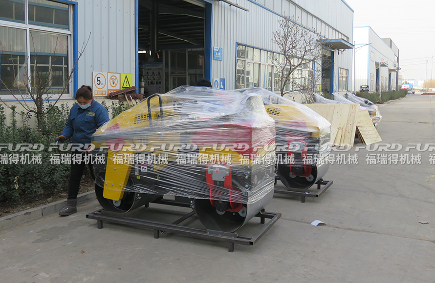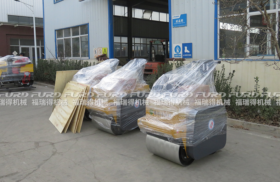 福瑞得5台小型压路机装箱出口新加坡