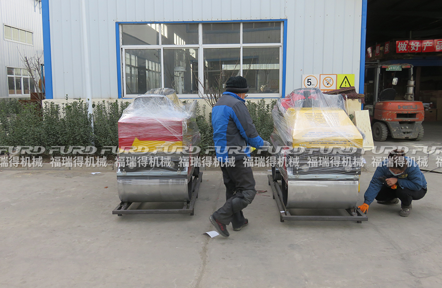 1月18日,福瑞得机械3台手扶双轮压路机和两台座驾压路机打包装箱出口新加坡。