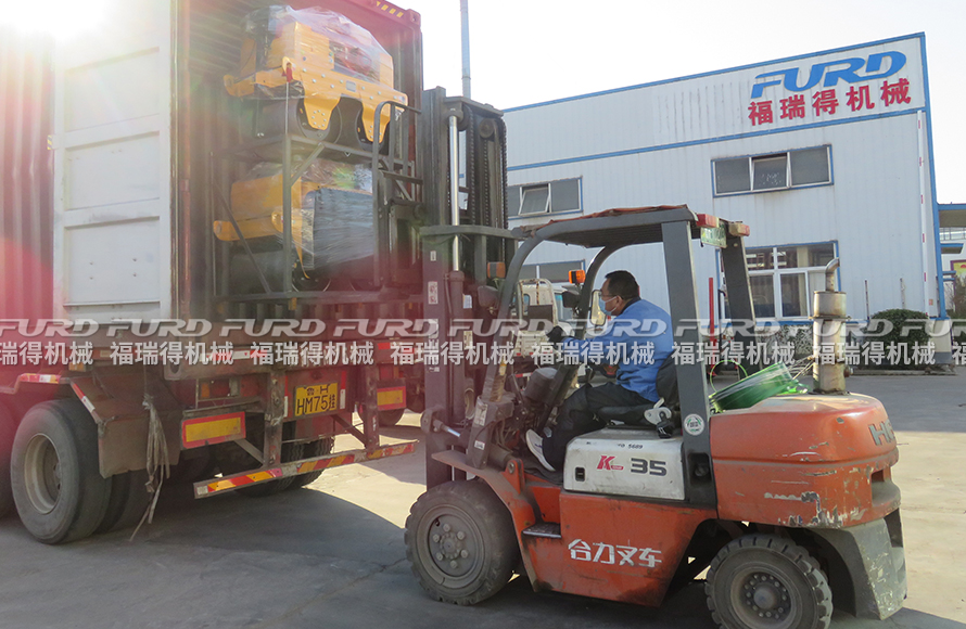 2月21日,福瑞得机械10台手扶双轮压路机、2台手扶单轮压路机和1台座驾压路机装车出口新加坡,这是福瑞得机械年后刚上班出口的第一批压路机订单。