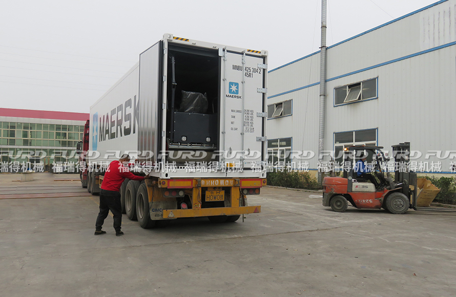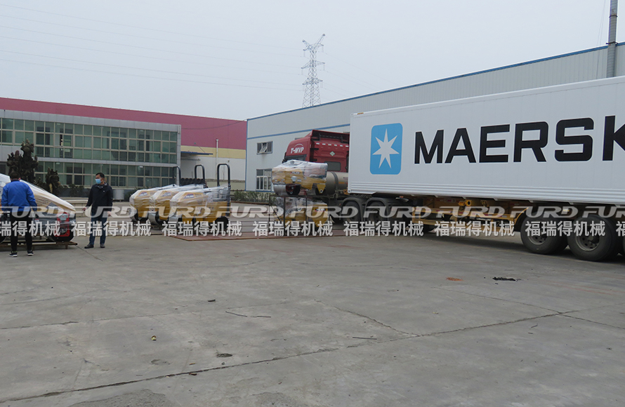 3月19日,福瑞得机械装柜出口一批座驾压路机。