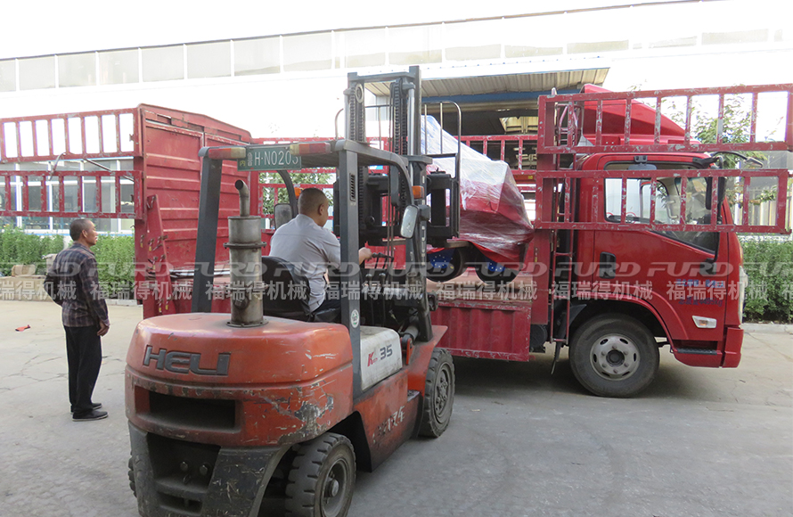 9月24日,福瑞得机械5台手扶双钢轮压路机打包发往浙江。
