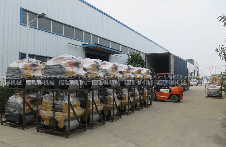 10月25日,福瑞得机械46台手扶双钢轮压路机装车出口墨西哥。