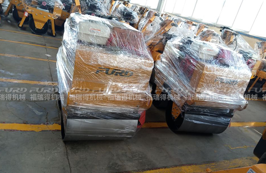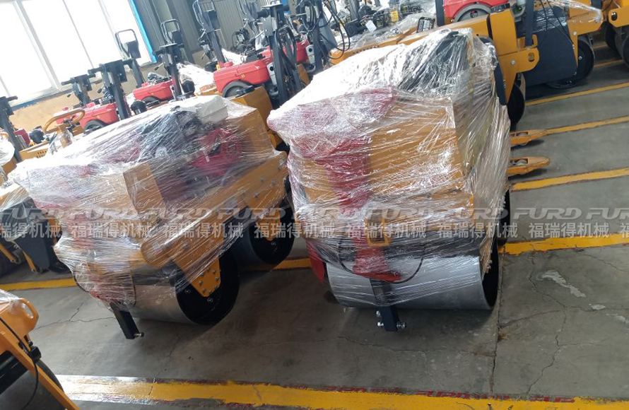 福瑞得2台手扶双钢轮压路机打包发往菏泽市