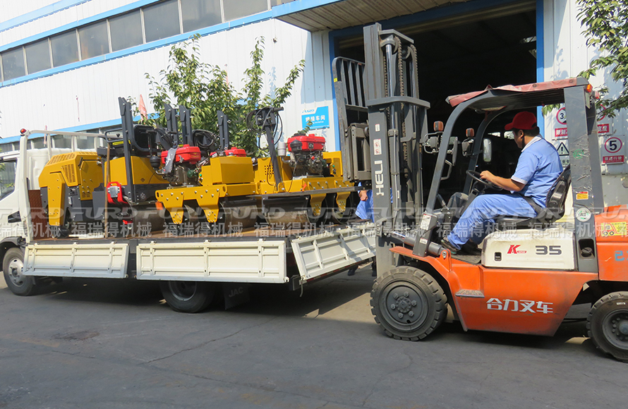 福瑞得机械4台小型压路机装车发往河南。