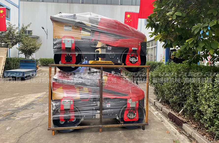 10月5日,福瑞得2台双钢轮座驾压路机打包发往威海。