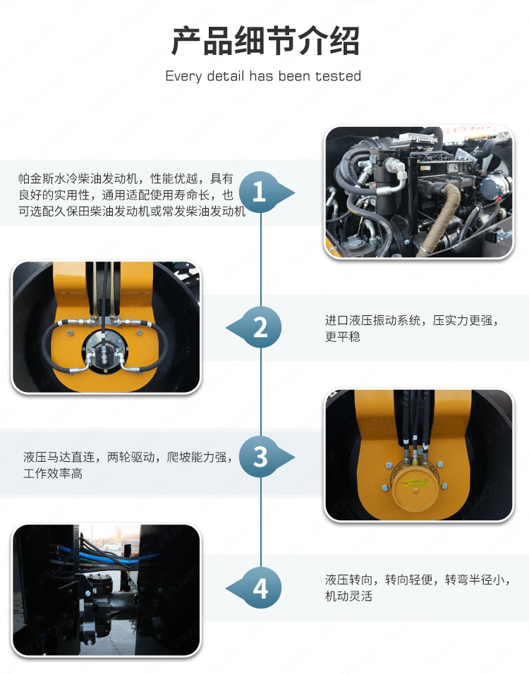 FYL-1400是4吨振动压路机,采用全液压传动,双鼓液压驱动,液压转向和液压振动。双鼓振动压路机